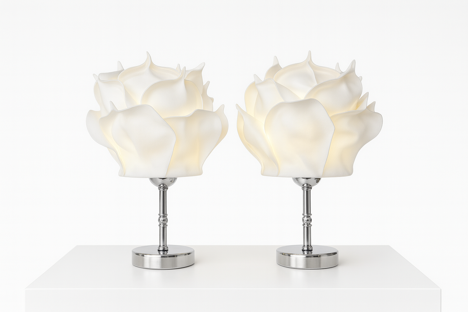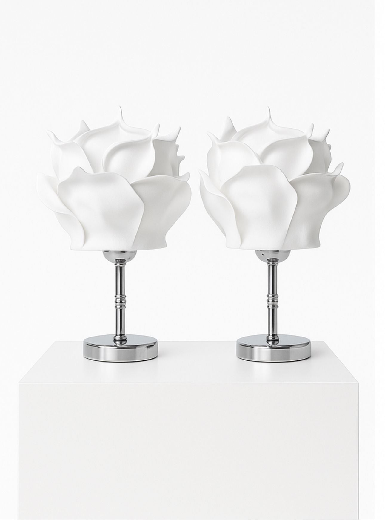 Beyaz Eva Gül tasarımı kablosuz masa lambası (Gümüş Ayak)